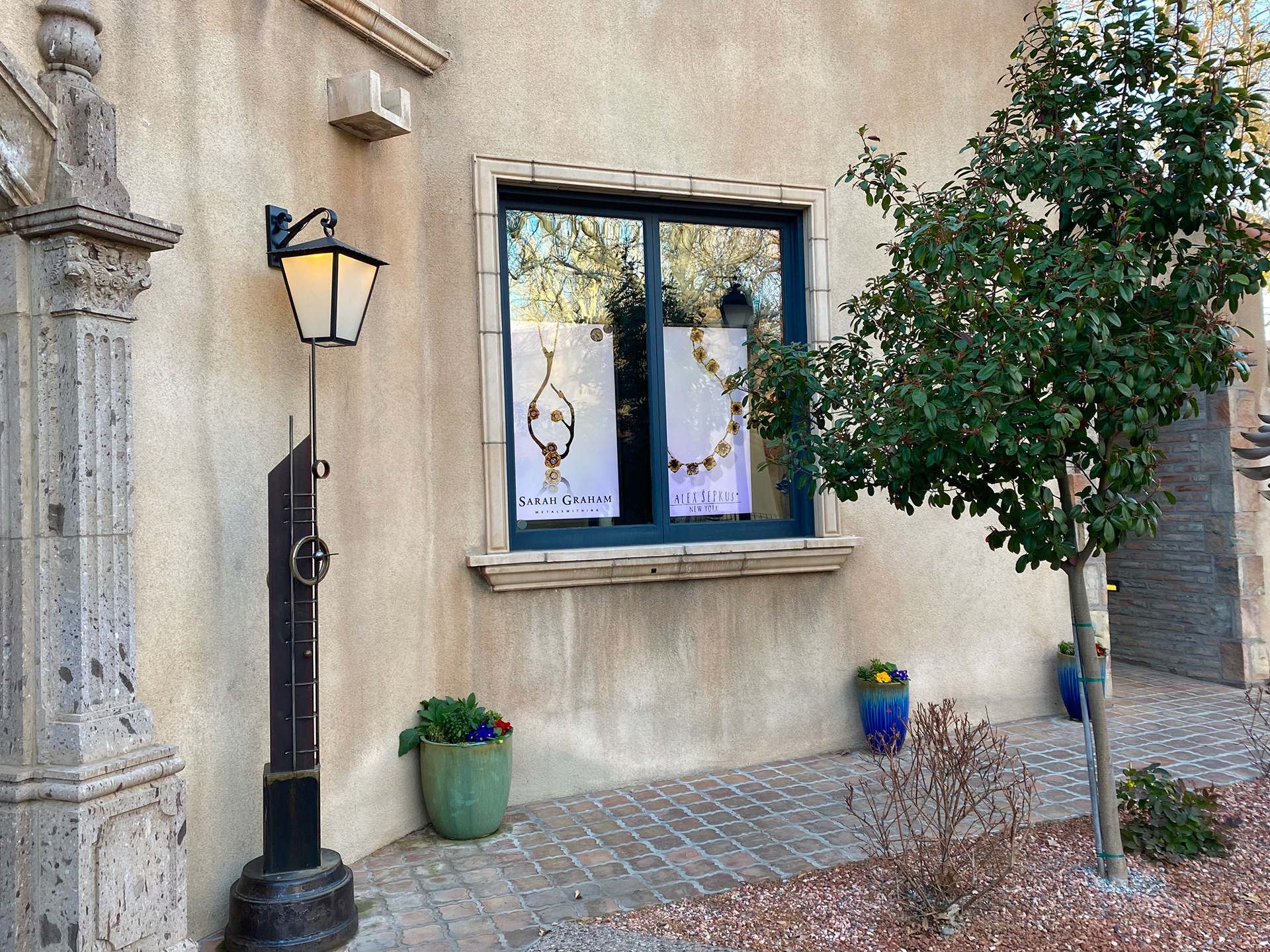 The following designs are in keeping with Renee Taylor Galleries existing branding which employs strong contrast between black and white in accompaniment with colorful product photography. The thank you cards, Chamber of Commerce rack cards, and digital window displays and business cards all fit the company's brand seamlessly and allow the jewelry and artwork to pop into the forefront of each design.
